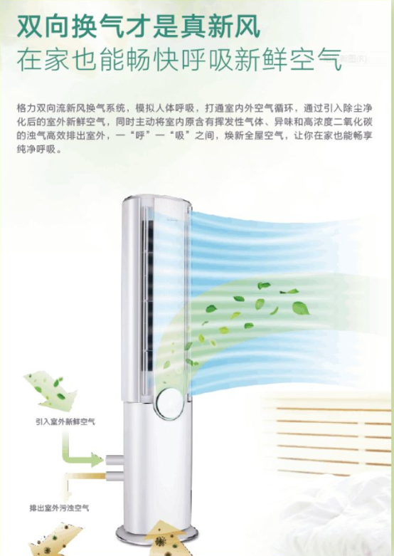格力“臻新風(fēng)”空調(diào)創(chuàng)新雙向流新風(fēng)換氣系統(tǒng),打通室內(nèi)外空氣循環(huán),引入室外新鮮空氣的同時(shí)排出室內(nèi)濁氣,呼吸之間盡是鮮氧新風(fēng)。