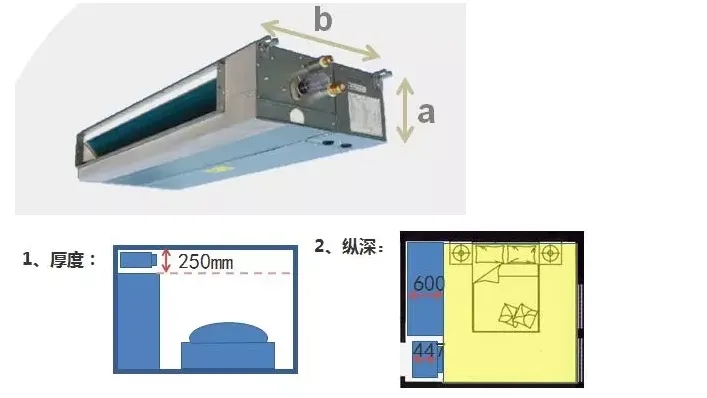 中央空調(diào)內(nèi)機是安裝在吊頂內(nèi)的,所以在安裝中央空調(diào)時,要考慮到層高和吊頂高度,以及在選購中央空調(diào)時要考慮好內(nèi)機的厚度。
