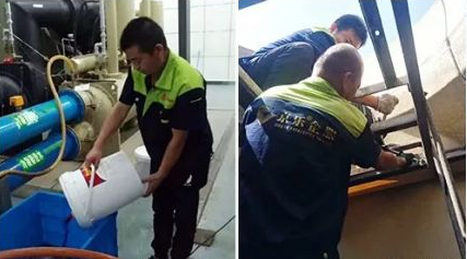關(guān)閉制冷劑泵的入口閥和出口閥,打開泵的排水閥和排氣閥,排出水。打開冷卻水系統(tǒng)最低點(diǎn)的閥門,排出冷卻水,打開水泵排水閥。系統(tǒng)水排出后,為防止雨水進(jìn)入冷卻塔,關(guān)閉冷卻塔總出口閥,打開冷卻塔集水盤的排水閥,以便雨水及時從排水閥排出。