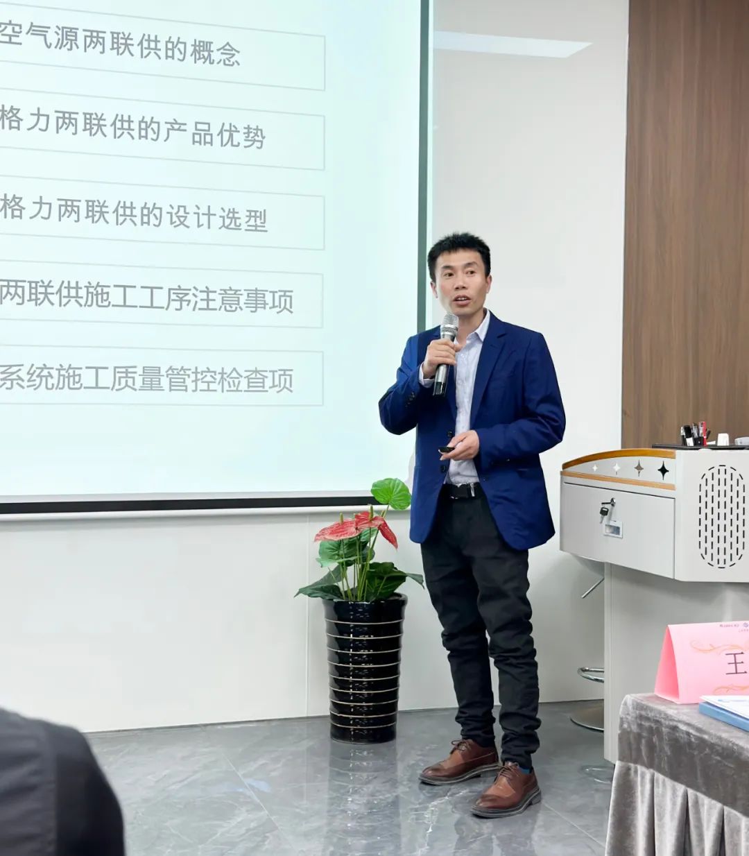 上海協(xié)格機(jī)電科技股份有限公司家裝項(xiàng)目經(jīng)理陳坤利先生給大家分享了兩聯(lián)供的概念、產(chǎn)品優(yōu)勢(shì)、設(shè)計(jì)選型、施工工序注意事項(xiàng)及施工質(zhì)量如何管控,并詳細(xì)分析了格力兩聯(lián)供產(chǎn)品與其它品牌兩聯(lián)供產(chǎn)品的區(qū)別和優(yōu)勢(shì),讓大家更了解格力兩聯(lián)供產(chǎn)品的性能及優(yōu)勢(shì)。