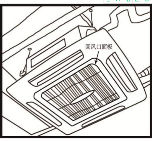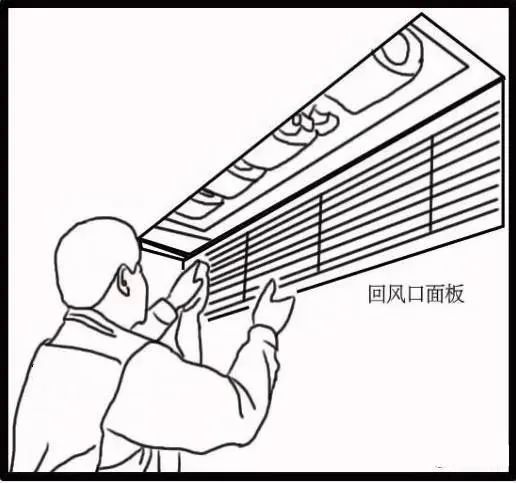 打開室內(nèi)機(jī)回風(fēng)口扣板取下過濾網(wǎng),用毛巾將室內(nèi)機(jī)回風(fēng)口面板擦干凈。