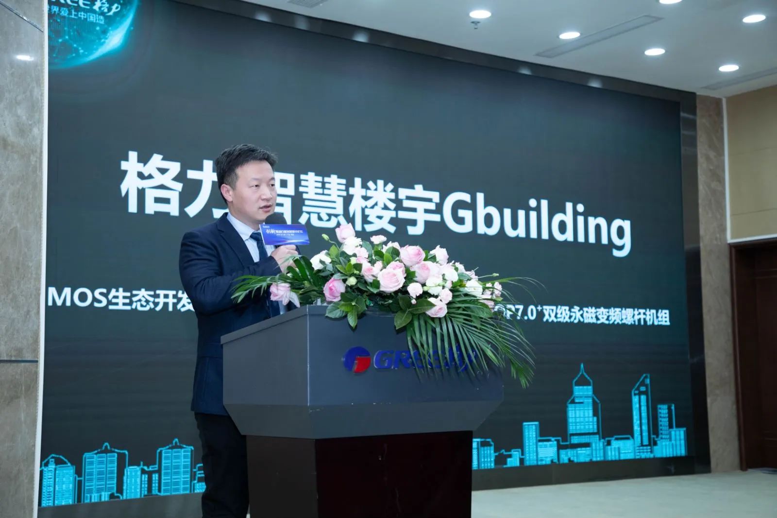 格力電器建筑環(huán)境與節(jié)能研究院院長助理李宏波為大家?guī)砣椄窳ρ芯砍晒篏MOS生態(tài)開發(fā)平臺、高xiao機房Gcooling和COP7.0+雙級永磁變頻螺桿機組。他表示格力GMOS生態(tài)開發(fā)平臺已廣泛應(yīng)用于智慧辦公、工廠、園區(qū)和校園;并向大家介紹了高xiao機房全流程無憂的優(yōu)勢和應(yīng)用案例.