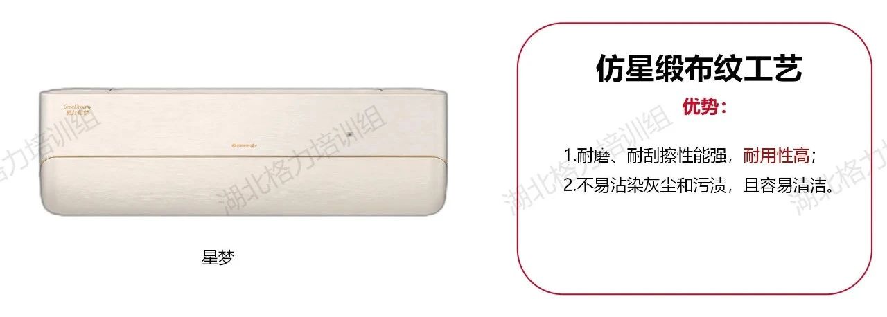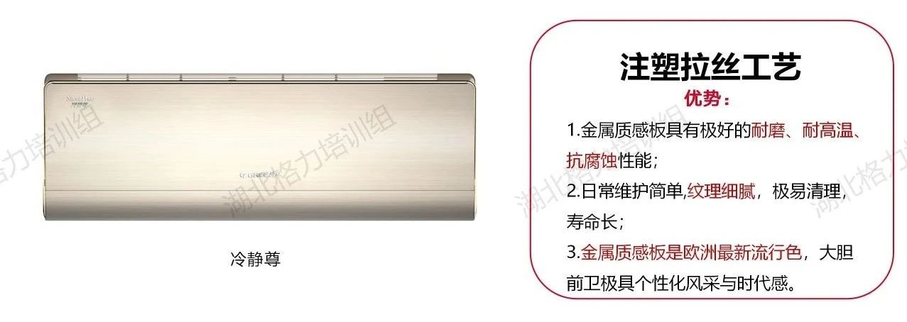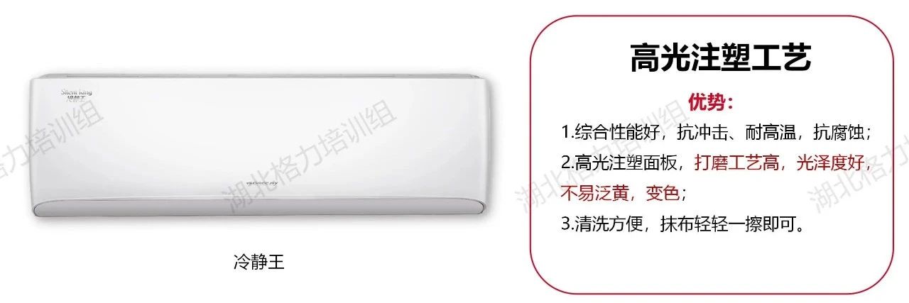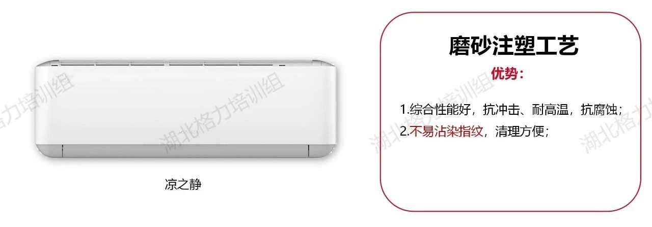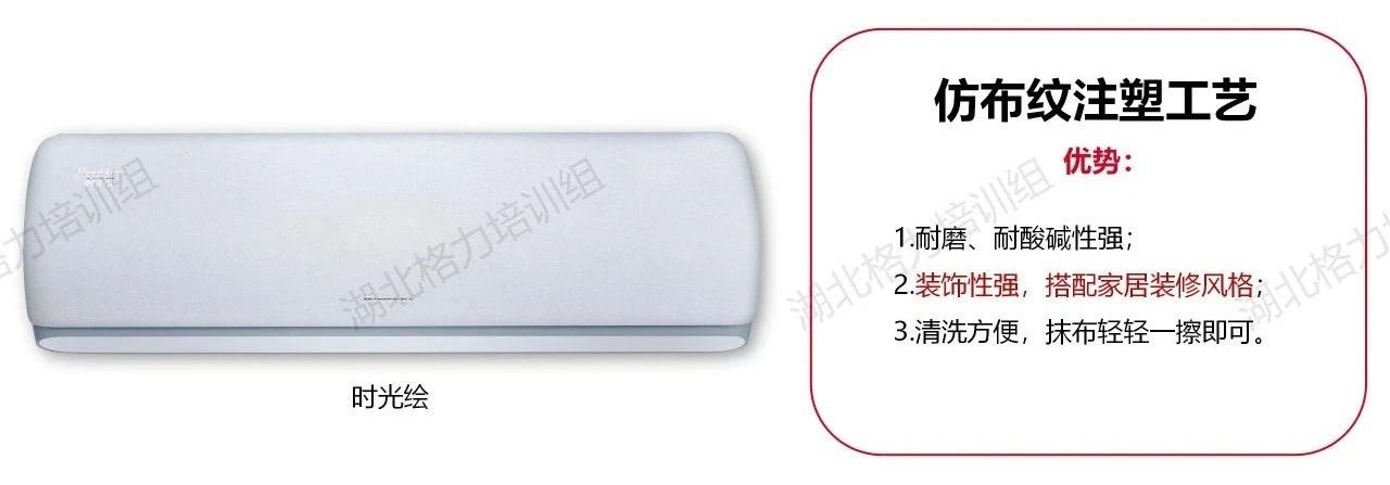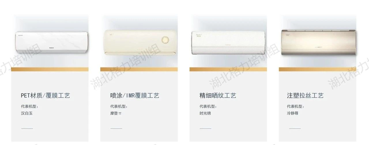 在這里我們簡要做了一個歸納整理,目前市面上可見的格力空調(diào)的面板工藝大致分為以下八類!分別是高光注塑工藝、仿布紋注塑工藝、磨砂注塑工藝、仿星緞布紋工藝、PET材質(zhì)/覆膜工藝、IMR覆膜工藝、精細(xì)曬紋工藝、注塑拉絲工藝。每種面板工藝所對應(yīng)的代表機型,也給大家列舉出來了。