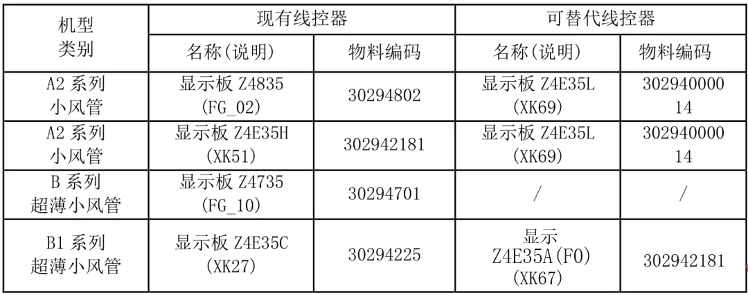 1 、線控器升級(jí)換代,不可與選配清單外的線控器混搭,安裝送貨之前需要服務(wù)人員確認(rèn)好線控器型號(hào)。