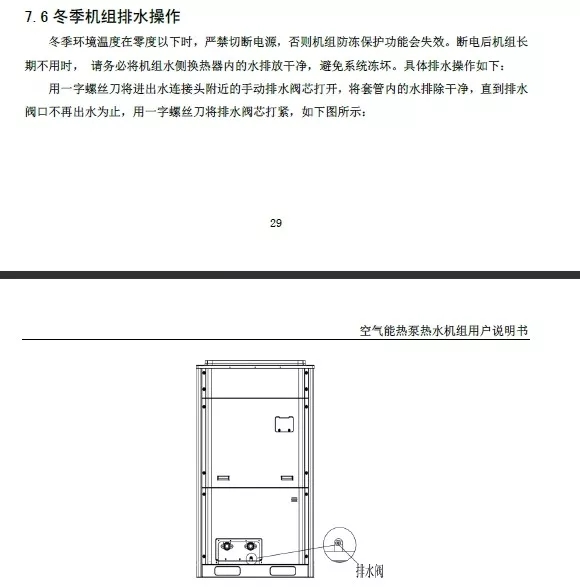 例如:說(shuō)明書(shū)請(qǐng)查看冬季機(jī)組排水操作內(nèi)容