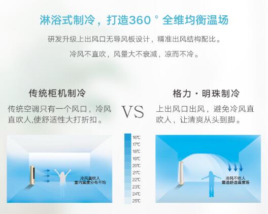 格力·明珠空調(diào)制冷時(shí)由上出風(fēng)口出風(fēng),實(shí)現(xiàn)“淋浴式制冷”,冷風(fēng)不直吹,打造360°全維均衡溫場(chǎng);上出風(fēng)口無(wú)導(dǎo)風(fēng)板的設(shè)計(jì)不僅使得其外觀香檳金色的線條時(shí)尚設(shè)計(jì)得以show出,更是出風(fēng)結(jié)構(gòu)配比足夠精準(zhǔn)的信心體現(xiàn)。嵇康在《養(yǎng)生論》中說(shuō)夏季炎熱,“宜調(diào)息靜心,常如冰雪在心,炎熱亦于吾心少減,不可以熱為熱,更生熱也。”格力·明珠空調(diào)正是現(xiàn)代社會(huì)的“靜心涼”。風(fēng)量大不衰減,足夠涼爽,涼而不冷。練完三伏,咱們?cè)賮?lái)“練練”三九——到了冬天,格力·明珠空調(diào)呼應(yīng)了中國(guó)人“腳暖了身子就暖了”的老話——它能夠提供“地毯式制熱”。