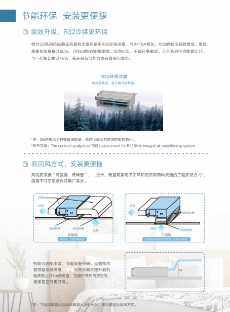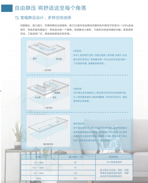 格力D2系列風(fēng)管送風(fēng)式空調(diào)機(jī)組,容量范圍2.6kW~14kW,采用環(huán)保冷媒R32、觸摸屏超薄防潮線控器,可全面融入室內(nèi)裝潢設(shè)計(jì),創(chuàng)造優(yōu)雅和諧的室內(nèi)環(huán)境。廣泛適用于家庭、賓館、酒店、餐廳、辦公室、會(huì)議室等場(chǎng)所。