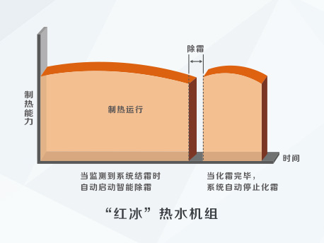 機(jī)組根據(jù)室外環(huán)境溫度及運(yùn)行狀態(tài)智能調(diào)整除霜時間,有霜化霜,無霜不化,可減少除霜帶來的能力衰減,提升機(jī)組制熱效率。