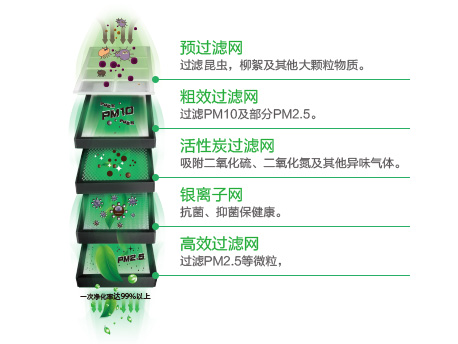過濾網(wǎng)前增加了銀離子網(wǎng),具有抗菌、抑菌和保護過濾網(wǎng)的作用。