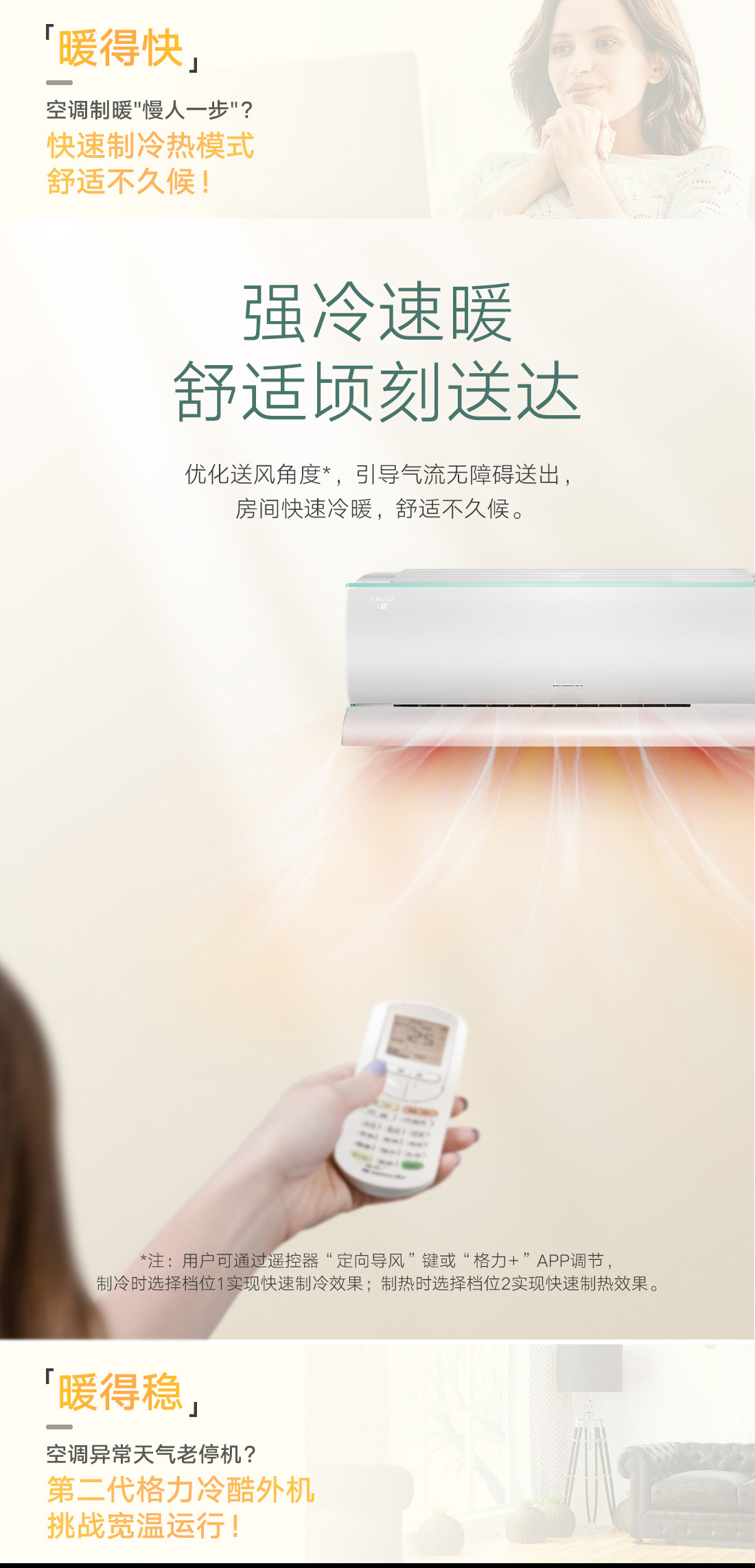主要特點:新一代恒暖除霜技術(shù) 360度運動大導(dǎo)風(fēng)板 56℃凈菌自潔 智能光敏傳感